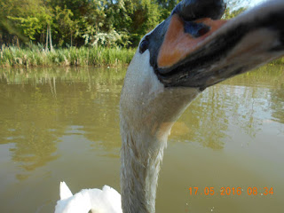 Daddy Swan decided that we should provide some breakfast for his young family, so he knocked firmly at the window to get our attention.